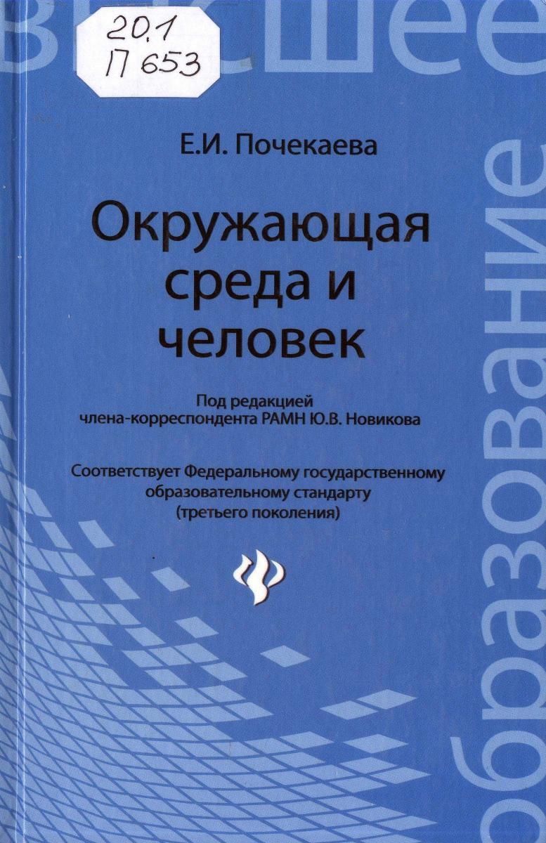 4. Почекаева, Е. И. Окружающая среда и человек : учеб. пособие для студентов вузов / Е. И. Почекаева ; под ред. Ю. В. Новикова. – Ростов-на-Дону : Феникс, 2012. – 574 с.
