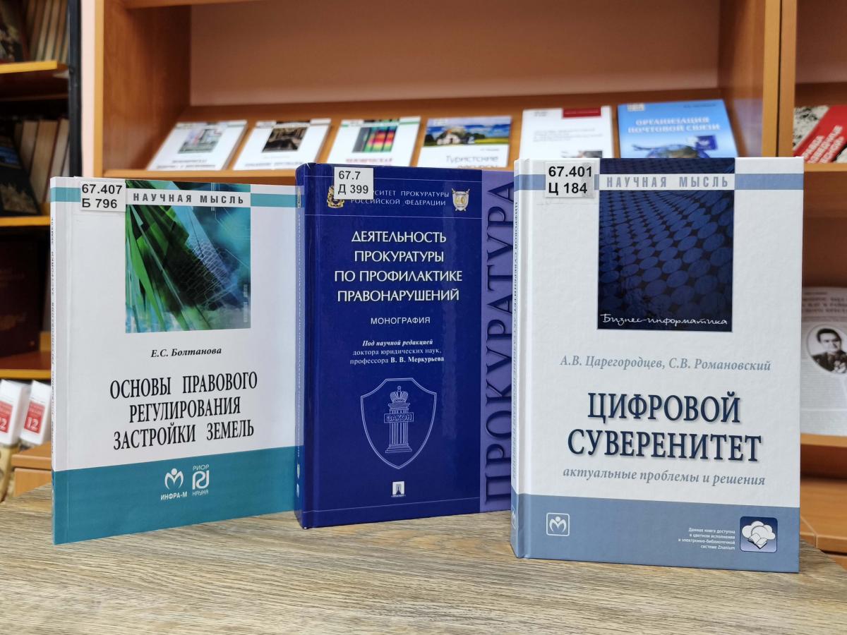 На выставке представлены книги, посвящённые вопросам профилактики правонарушений, проблеме причинной связи в уголовном праве, а также информационным системам государственного управления и проблемам земельного права.