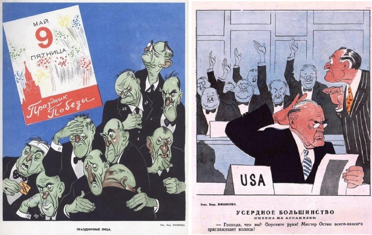 Нельзя просто сказать, что в творческом багаже Бориса Ефимова было много советской идеологии, поскольку все его работы – это концентрация «советского» взгляда на мир. Кому-то этот взгляд может показаться упрощённым (в силу своей прикладной пропагандистской функции), но работы художника отличаются универсальностью. Поэтому его карикатуры не теряют своей актуальности и в наши дни.