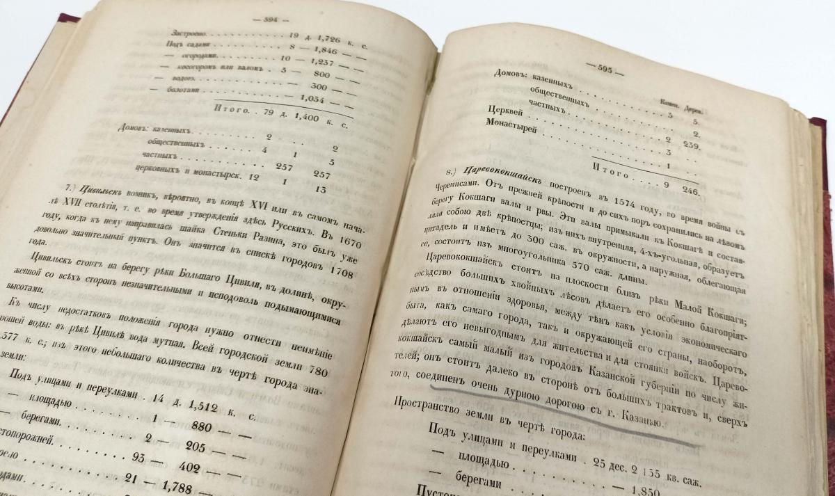 Интересным является раздел «Очерки городов и других замечательных мест», где приведены подробности топографии, история возникновения городов. Например, о Царевококшайске сообщается: «Самый малый из городов Казанской губернии по числу жителей; он стоит далеко в стороне от больших трактов».