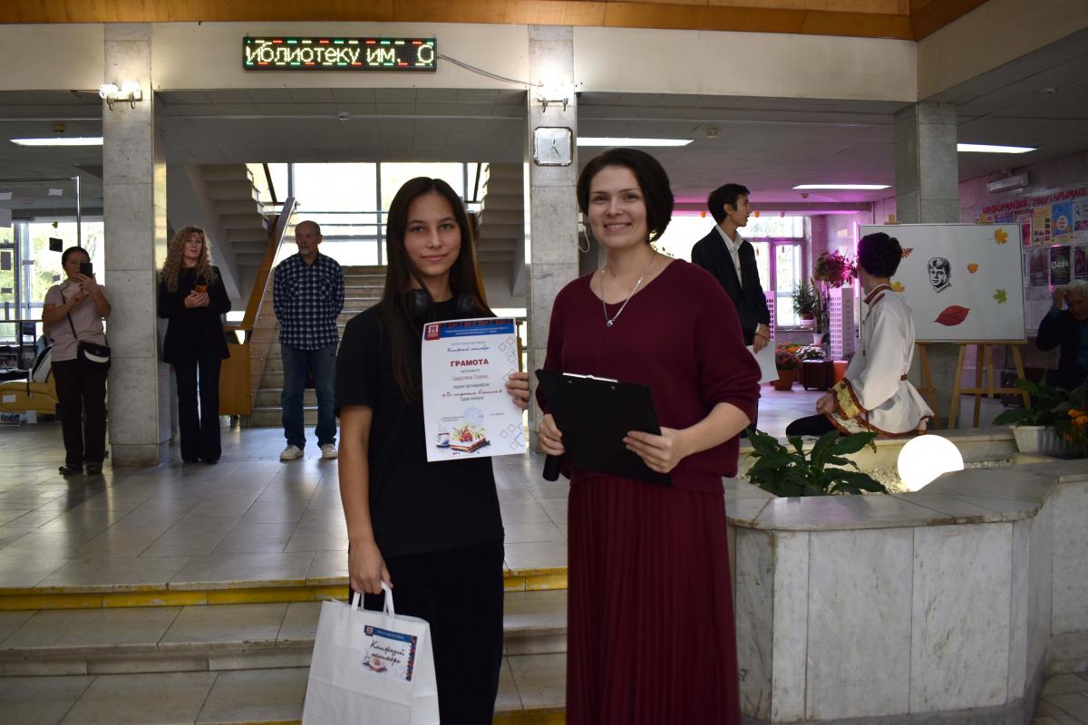 Главным событием мероприятия стало торжественное награждение участников фотомарафона «По строкам Есенина». Победителям были вручены грамоты и ценные призы. Итоги фотомарафона превзошли все ожидания: работы участников составили яркую галерею, часть фотошедевров была представлена в виде парящей инсталляции в холле библиотеки.