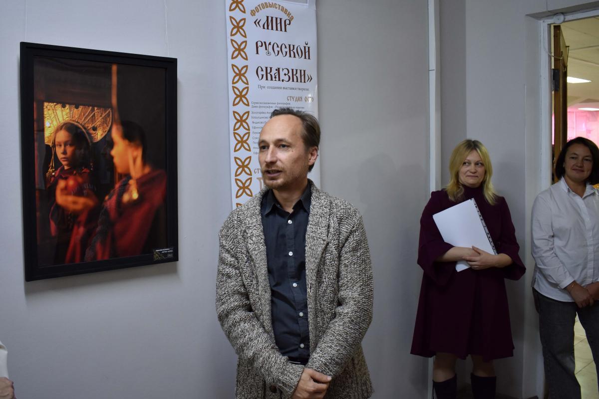 Участников вернисажа приветствовала директор Национальной библиотеки имени С. Г. Чавайна Щеглова Ирина Витальевна. Она поздравила преподавателей и учащихся Школы креативных индустрий с успешной реализацией выставочного проекта «Мир русской сказки» и пожелала дальнейших творческих и педагогических успехов.