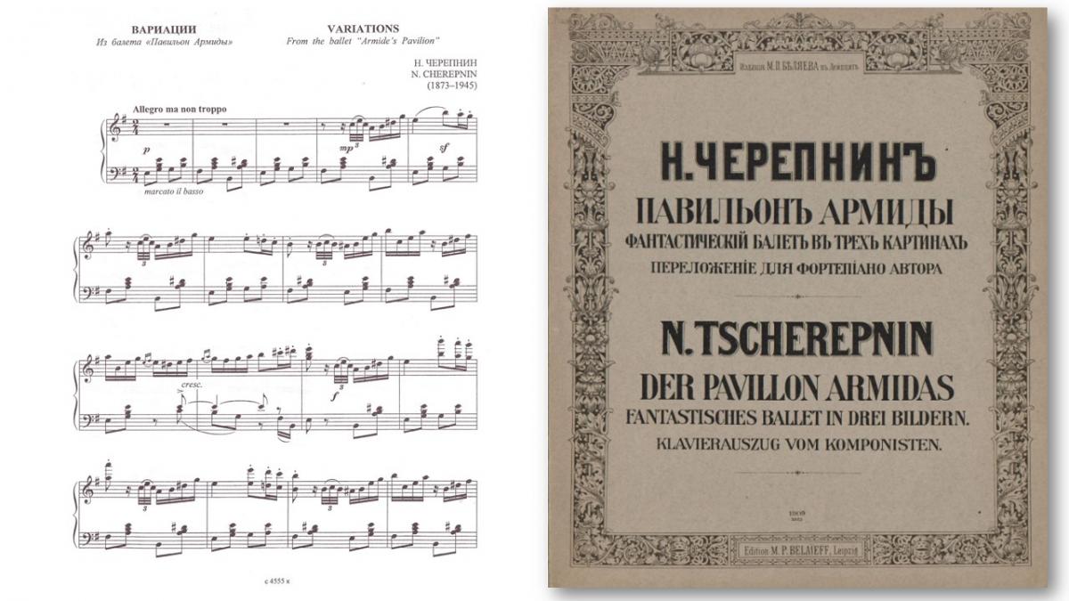 19 мая 1909 года «Русские сезоны» в Париже были открыты балетом Н. Н. Черепнина «Павильон Армиды». Публика была в восторге! Балетмейстер постановки – М. Фокин, сценограф – А. Бенуа. Сектор нот и звукозаписей располагает нотами композитора, созданными в «Русских сезонах»: