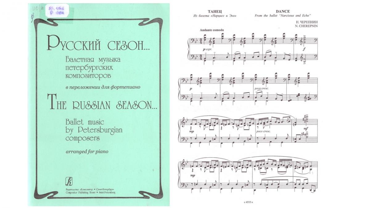 Русский сезон…: балетная музыка петербургских композиторов в переложении для фортепиано / составитель С. Н. Поддубный. – Санкт-Петербург : Композитор, 2007. – 52 с.