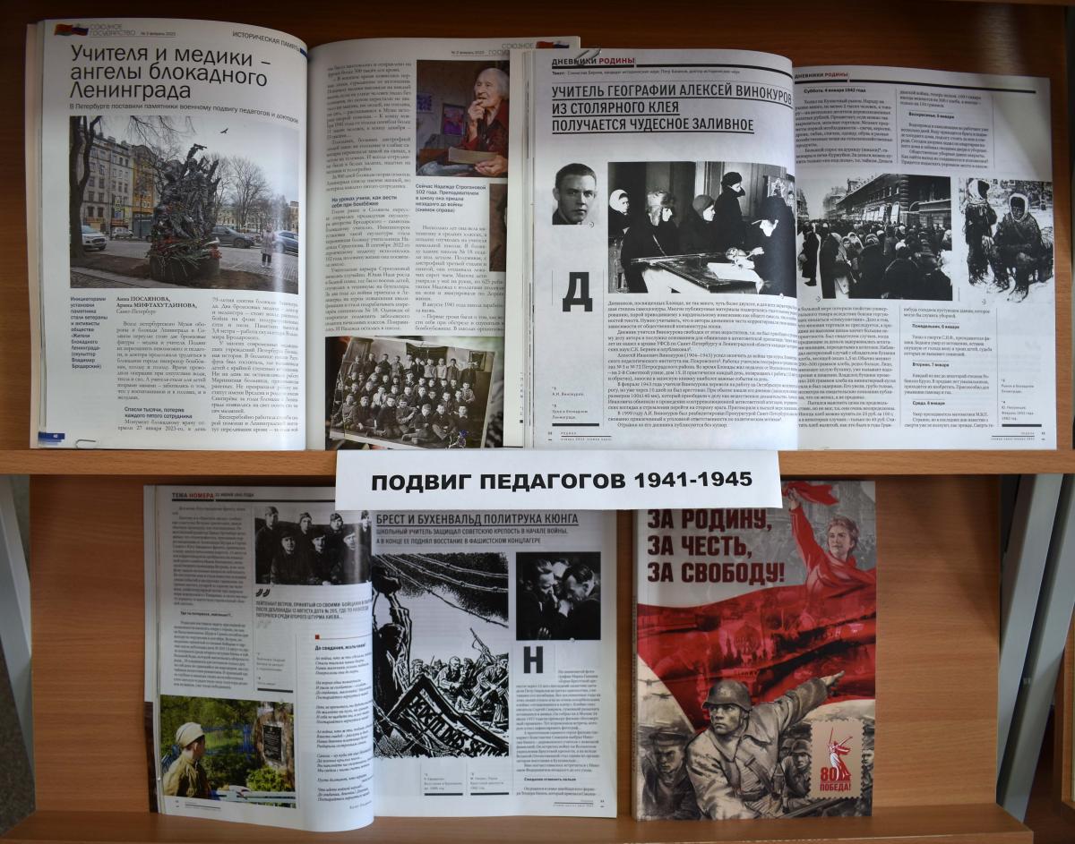 Один из разделов выставки посвящён подвигу педагогов 1941-1945 гг. в блокадном Ленинграде, Бресте, в период Холокоста, в Бухенвальде – тем, кто помогал, спасал, протягивал руку помощи. Многие педагоги участвовали в движении сопротивления, подвергались преследованиям и казням.